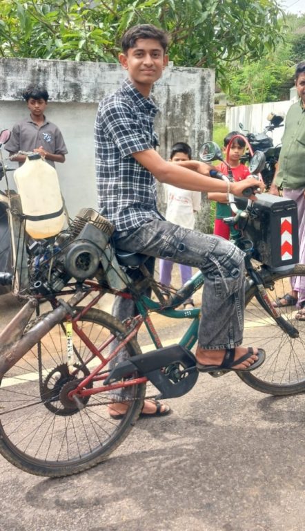 അച്ഛൻ വാങ്ങിക്കൊടുത്ത സൈക്കിളിലാണ് ആഗ്രഹം യാഥാർഥ്യമാക്കിയത്. മോപ്പഡിന്റെ പഴയ എൻജിൻ സൈക്കിളിന്റെ പിന്നിലെ കാരിയറിൽ വെൽഡ് ചെയ്ത് പിടിപ്പിച്ച് സൈക്കിളിന്റെ പിന്നിലെ ചക്രത്തിൽ പൽചക്രം ഘടിപ്പിച്ച് ചെയിൻ മുഖേന ബന്ധിപ്പിച്ചാണ് ആഗ്രഹം സഫലമാക്കിയത്. ചെറിയ പ്ലാസ്റ്റിക് ബാരൽ കൊണ്ട് പെട്രോൾ ടാങ്കും. സൈക്കിൾ ഹാൻഡിലിലേക്ക് ആക്സിലേറ്റർ സംവിധാനവും ഘടിപ്പിച്ചാണ് നിയന്ത്രണ സംവിധാനം ഒരുക്കിയിരിക്കുന്നത്. കയറ്റത്തിൽ തള്ളണ്ട, ക്ഷീണവുമില്ല. ഒടുവിൽ ആരും അത്ഭുതപ്പെടുന്ന സൈക്കിൾ സ്വന്തമായി. അയൽക്കാർക്കും കൂട്ടുകാർക്കും മുന്നിൽ തന്റെ കണ്ടുപിടുത്തം പ്രദർശിപ്പിച്ച് അഭിനന്ദനങ്ങൾ നേടിയിരിക്കുകയാണ് ഈ ബാലൻ.